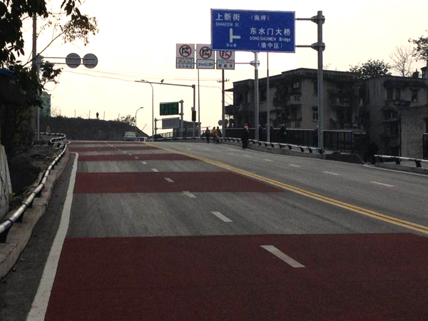 3月19日,由我司承接的东水门大桥南立交彩色薄层环氧抗滑层铺装顺利完工。