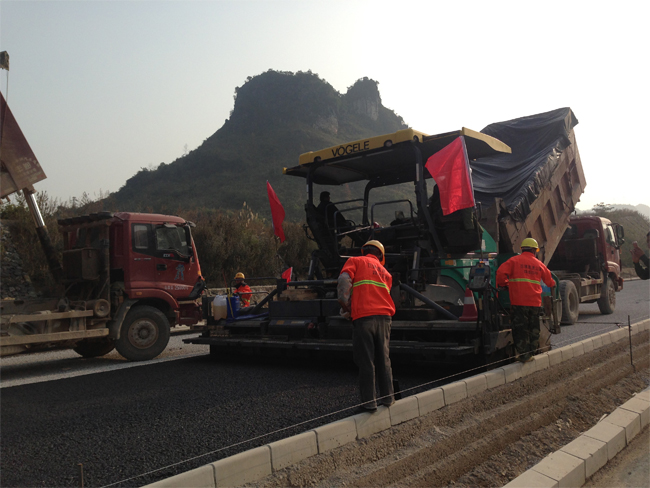 近日,由我司承建的广西百靖高速路面防水试验段顺利进行。
