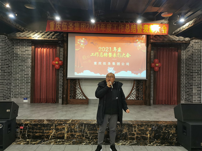 颁奖典礼后,公司总经理助理李总发表了讲话,他鼓舞伍圣同仁来年继续努力、再创佳绩,同时祝愿公司2022年蒸蒸日上,更上一层楼。