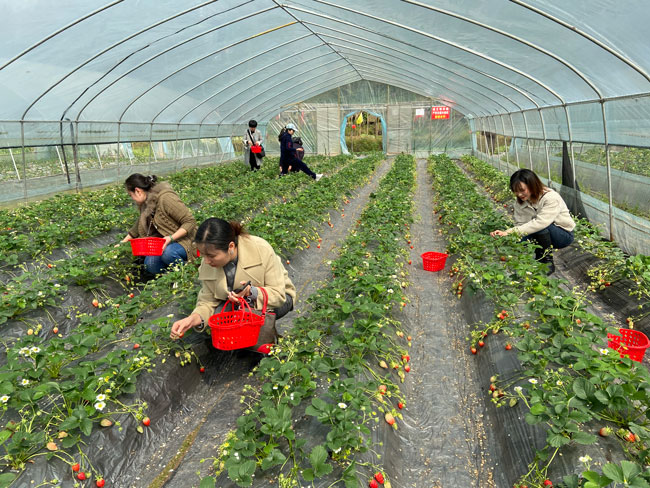 3月8日下午,大家到达草莓基地,草莓基地里一片生机勃勃,翠绿的叶子、鲜红欲滴的草莓、芬芳的果香都让人感到春天到来的曼妙脚步。大家一边品尝一边采摘,动手的快乐、品尝的喜悦、打趣的笑声溢满大棚。当然,在品尝和采摘草莓的同时,大家也不忘在草莓大棚里留下欢乐的记忆。