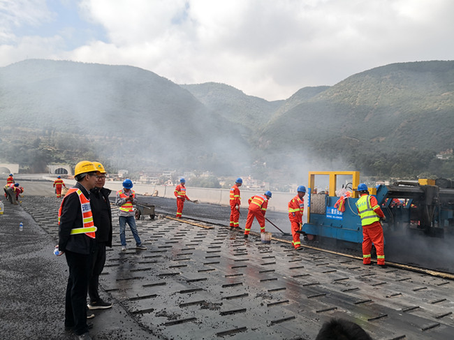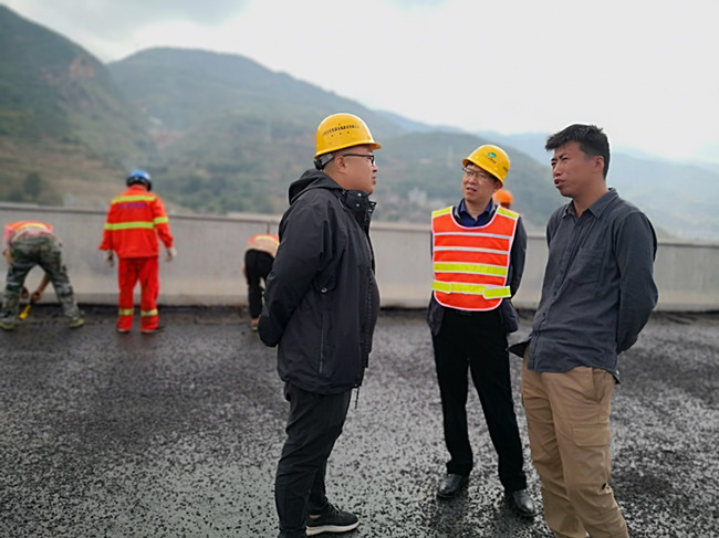 抵达项目后,总经理一行首先到了武倘寻钢桥面浇筑式铺装现场,并听取了项目部关于目前钢桥浇筑式工作的进展情况汇报。随后总经理对钢桥浇筑式的每个施工环节进行了检查并仔细询问安全管理工作、工程质量及施工难点等相关问题,重点对现场安全、施工作业管理等内容进行了检查、指导。