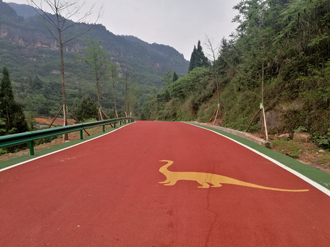 重庆伍圣建材有限公司以高效、保质、诚信的优秀行业作风从众多竞争单位中脱颖而出,顺利承接了老瀛山公园道路彩色铺装项目,此次项目采用了“铺装薄层环氧彩色抗滑层+镶嵌彩色图案”的施工方案。为加速公园布局及顺利开园,我司领导高度关注工程细节,亲临施工现场,督导精准施工,力求做到道路建设与地质公园完美融合。