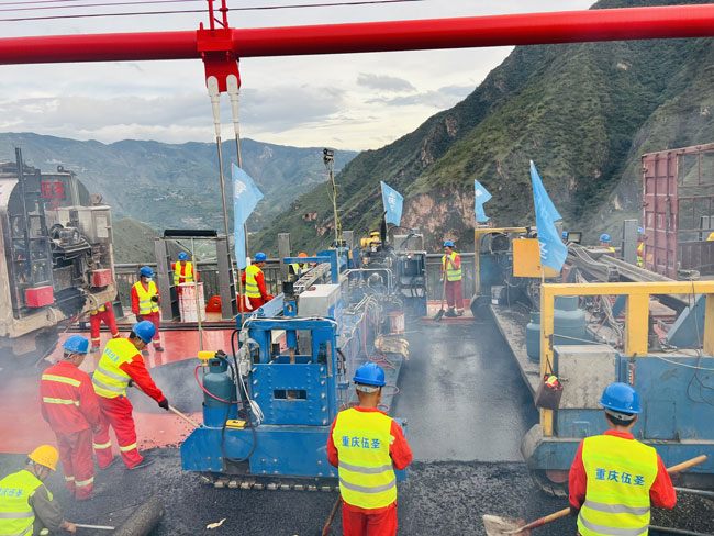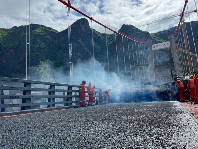 6月27日凌晨四点,经过数日的持续奋战,随着最后一车浇筑式沥青混合料摊铺的轰鸣声,由我司承接的云南省玉溪市绿汁江特大桥钢桥浇筑式铺装项目进入收尾阶段,同时标志着项目建设又一关键性施工节点圆满完成。