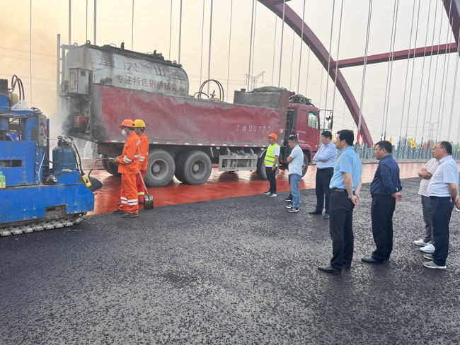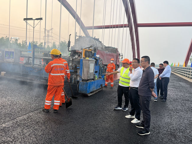 4月19日,安徽省六安市交通局局长及市重点工程建设管理处总工程师一行到我司承接的安徽六安金舒大道钢桥项目施工现场视察指导工作,金舒大道钢桥是六安市首座采用浇筑式沥青铺装施工工艺的钢桥项目,六安市交通建设部门各级领导给予了高度重视。