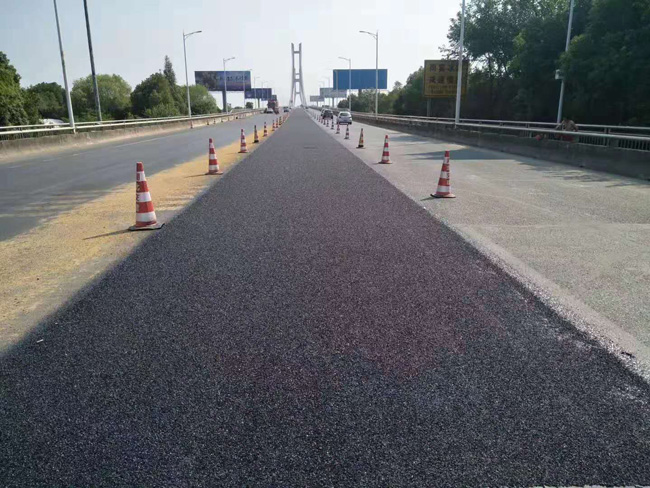 抗滑低噪超表处是使用超表处封层车,将层间界面剂、乳化高黏沥青或液体高黏沥青、集料、乳化高黏沥青或液体高黏沥青、表面保护等材料,五层同步洒(撒)布至原路面,具有行车噪音低、抗滑能力强、封水效果好、使用寿命长、快速开放交通、低碳环保、性价比高等优点。
