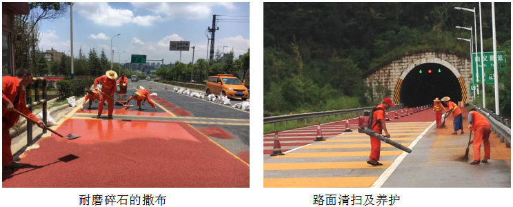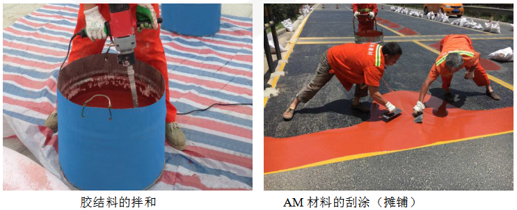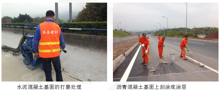 ①先将水泥砼或沥青砼进行表面处理,对水泥砼进行抛丸打砂和清洁处理,之后涂布一定厚度的环氧底涂层;对沥青砼不需进行打砂,应对沥 青路面清洁处理,不能有泥土、浮尘、灰浆等。