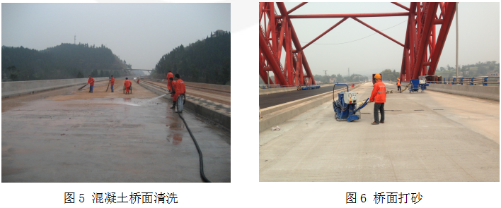 ②机器喷涂(无空气喷涂机):由操作人员手持喷枪,将喷枪后部的弯管插入原料桶中,直接从原料桶中吸取粘结剂,喷枪口喷出雾状的粘结剂,均匀覆盖在桥面。在第一遍喷涂1小时之后进行第二遍喷涂。待GF涂膜完全干燥后,即可进行沥青混合料的摊铺。