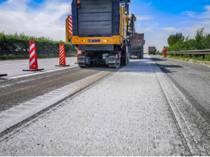 ②机器喷涂:由操作人员手持喷枪,将喷枪后部的弯管直接从原料桶中吸取GS-I防水粘结涂料,喷枪口喷出雾状的GS-I涂料,均匀覆盖在基面上。在第一遍喷涂1小时之后进行第二遍喷涂。待GS-I防水粘结涂料涂膜完全干燥后,即可进行沥青混合料的摊铺。