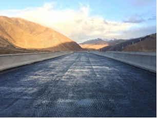 2、界面粘接强度高。涂膜强度高,不仅与水泥砼的附着力强,同时与上面沥青砼组成的铺装结构具有良好的抗剪性能、粘结性能。与传统防水材料(如防水卷材、水性防水涂料、乳化沥青等)相比,粘接强度明显提高,而且铺装沥青混凝土之后的组合结构的抗剪性能及粘接性能优良。